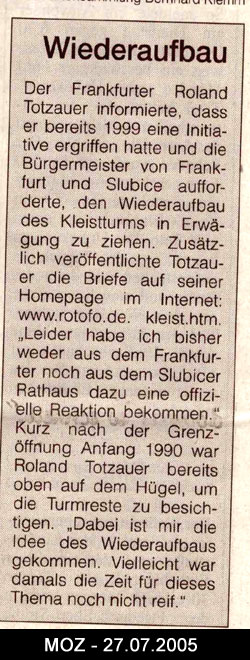 Am 22.10.2005 veröffentlichte die MOZ diesen Artikel: ![]() | ||||||||||||